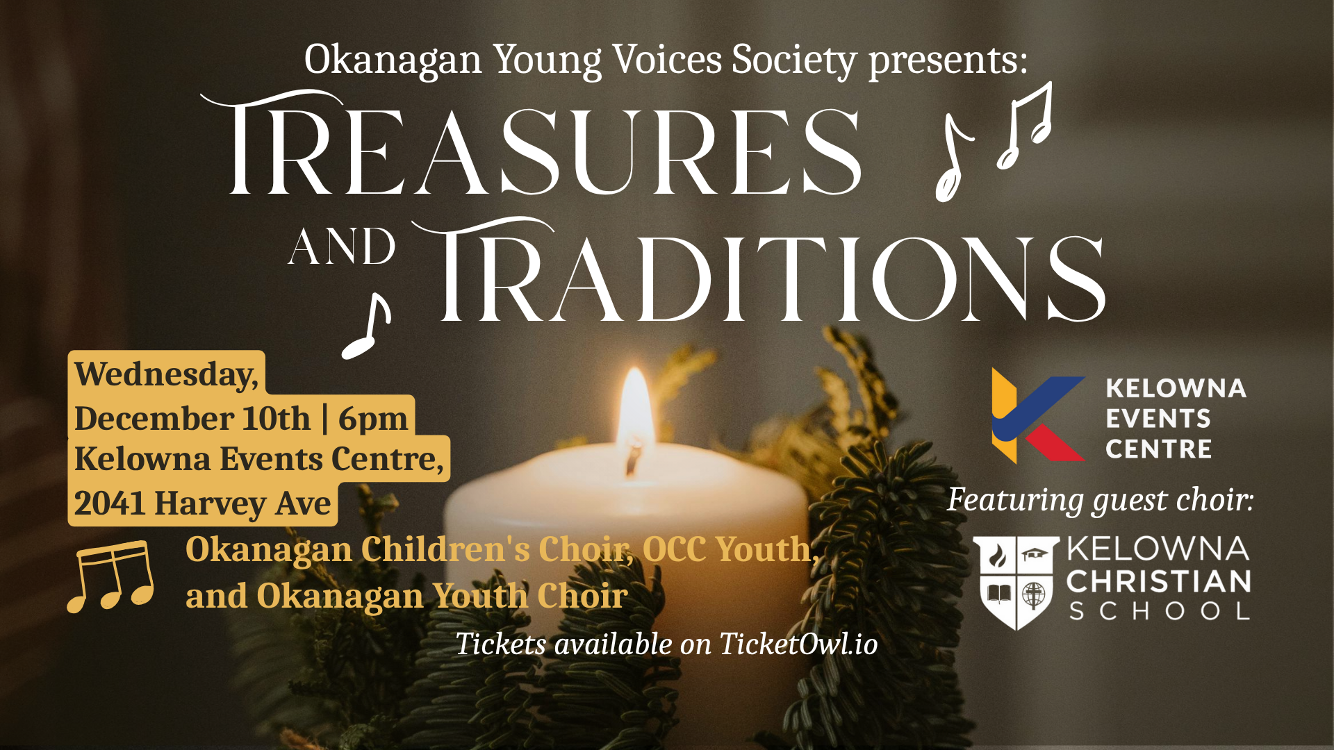 In October 2025, Okanagan Young Voices Society (formerly Okanagan Children’s & Youth Choir) approached me with a request to design the poster for their upcoming Christmas concert, “Treasures and Traditions.”